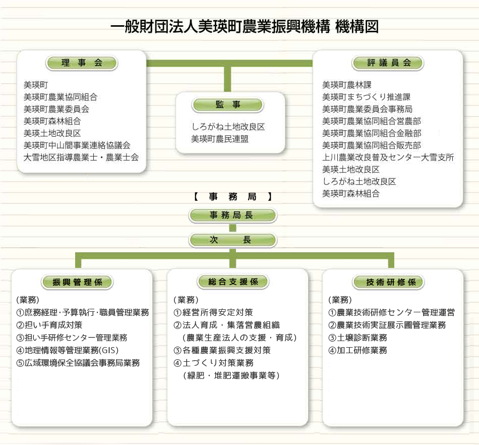 美瑛町では地域農業の担い手育成を核として、各種農業政策推進と農業情報の一元化を基に、 農業経営の向上を目的とする地域農業振興事業を行い、本町の農業経営基盤強化を図るため一般財団法人美瑛町農業振興機構を設立しました。